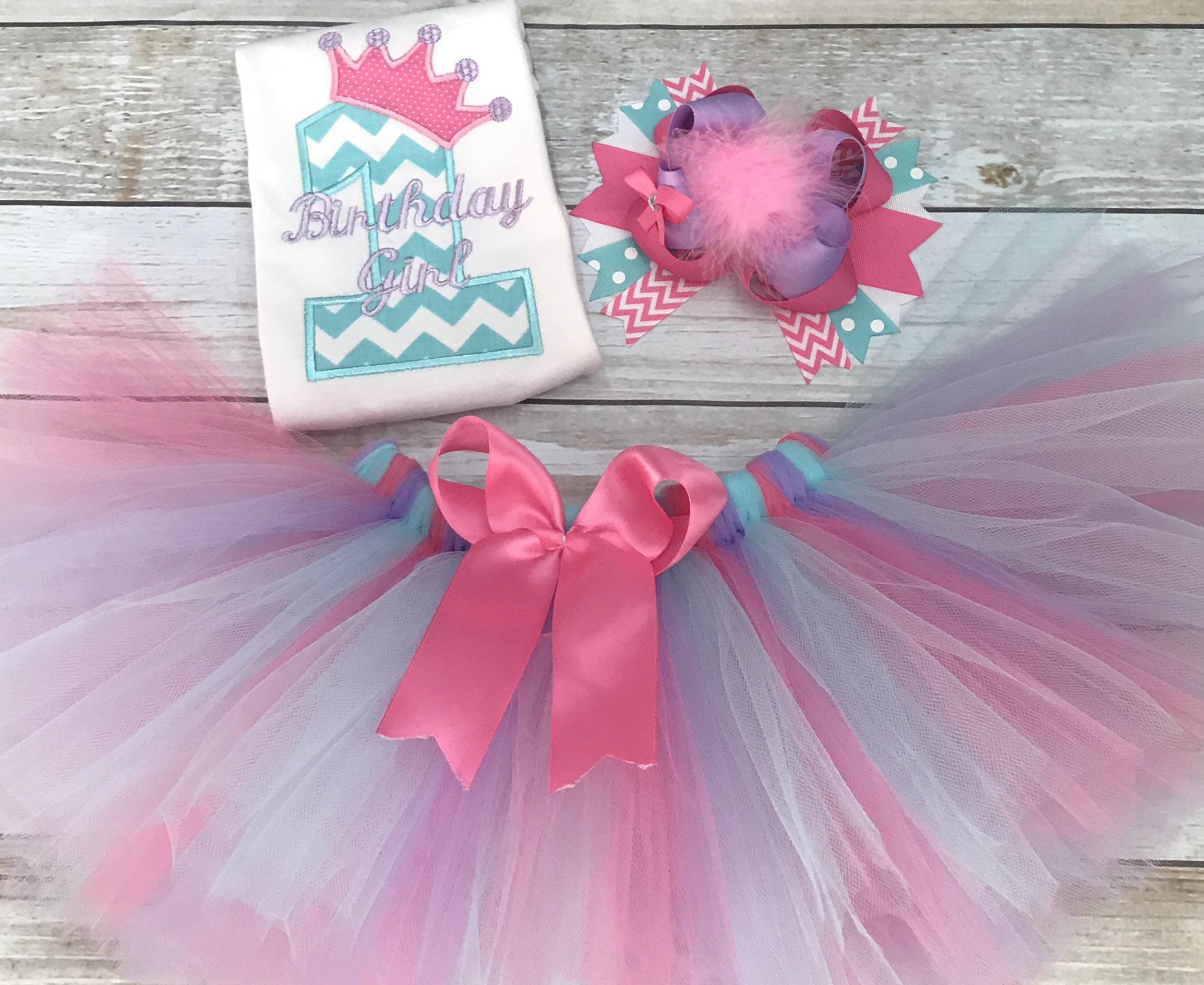 First Birthday Outfit Princess Aqua, Lavender, and Pink Tutu and Hairbow