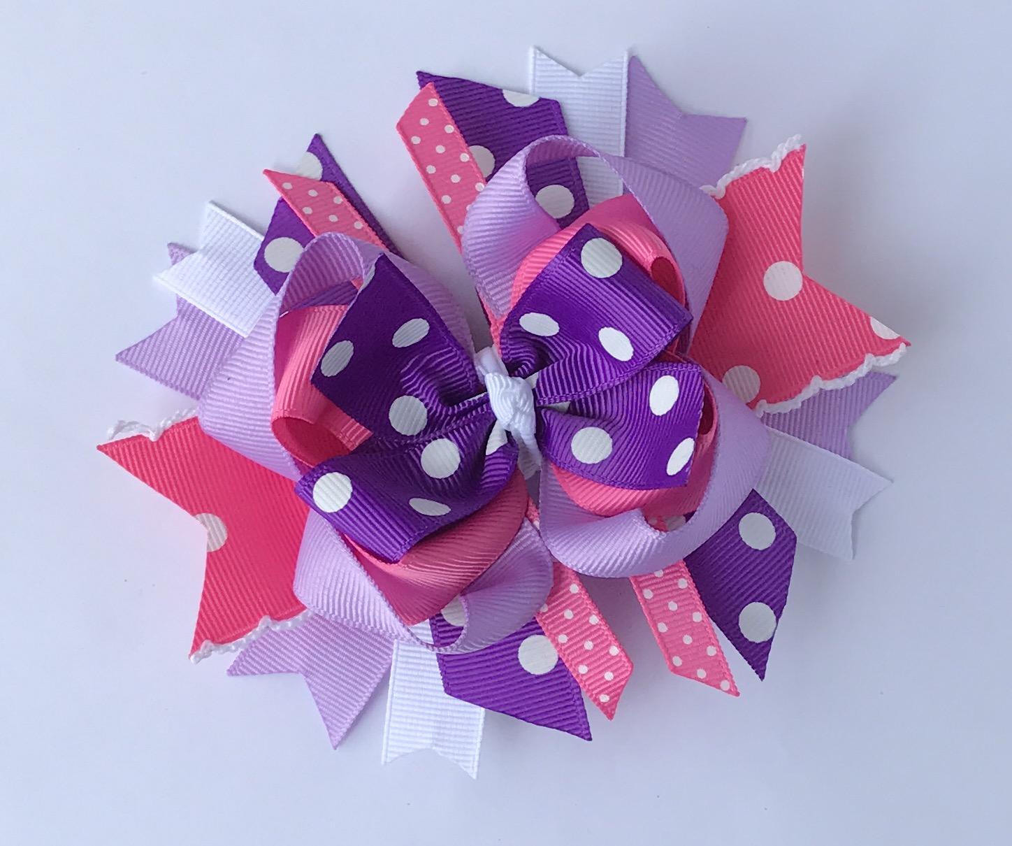 Super cute pink and purple hairbow. Hand crafted with the highest quality materials.