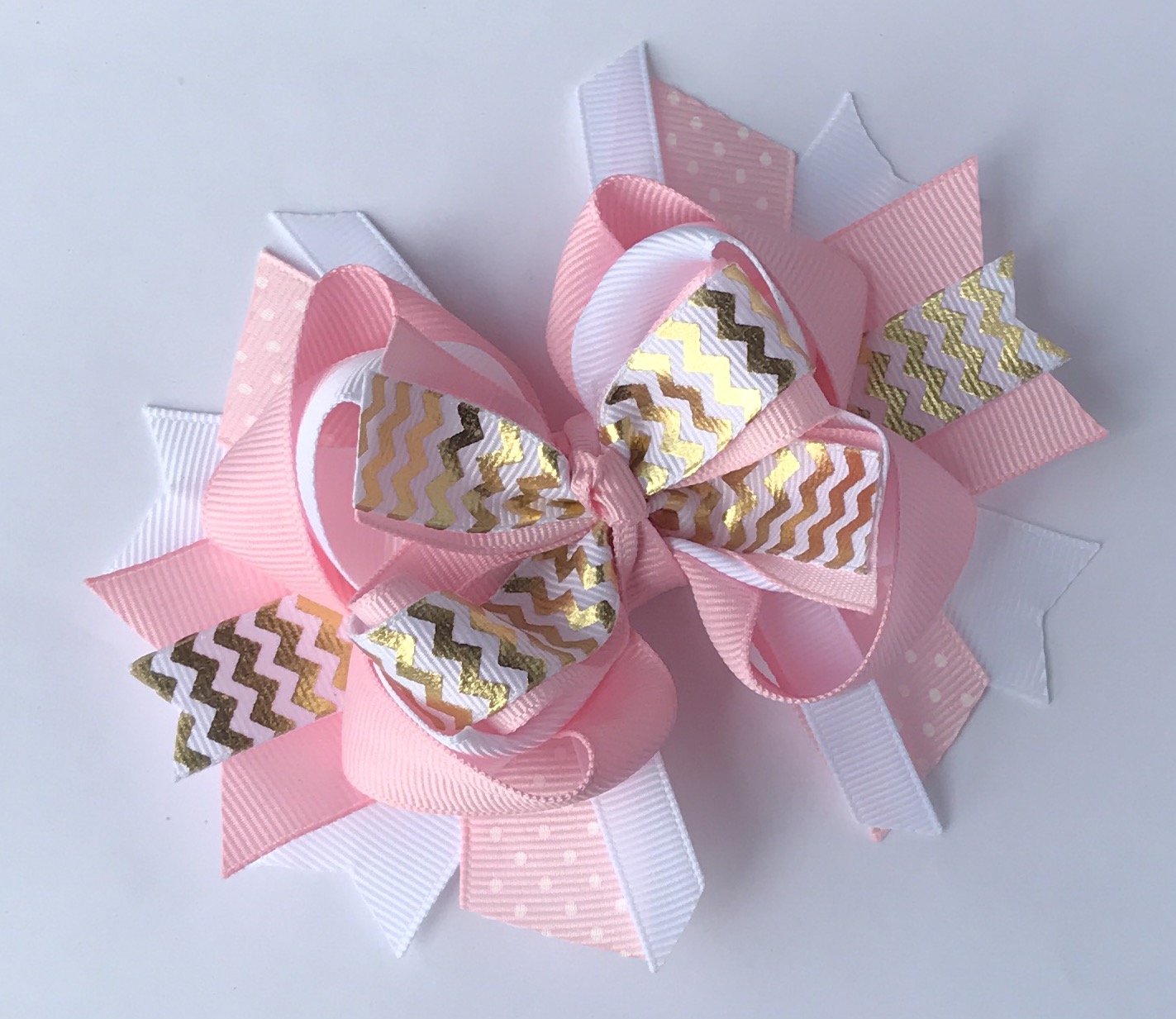 Super cute pink and gold hairbow. Hand crafted with the highest quality materials.