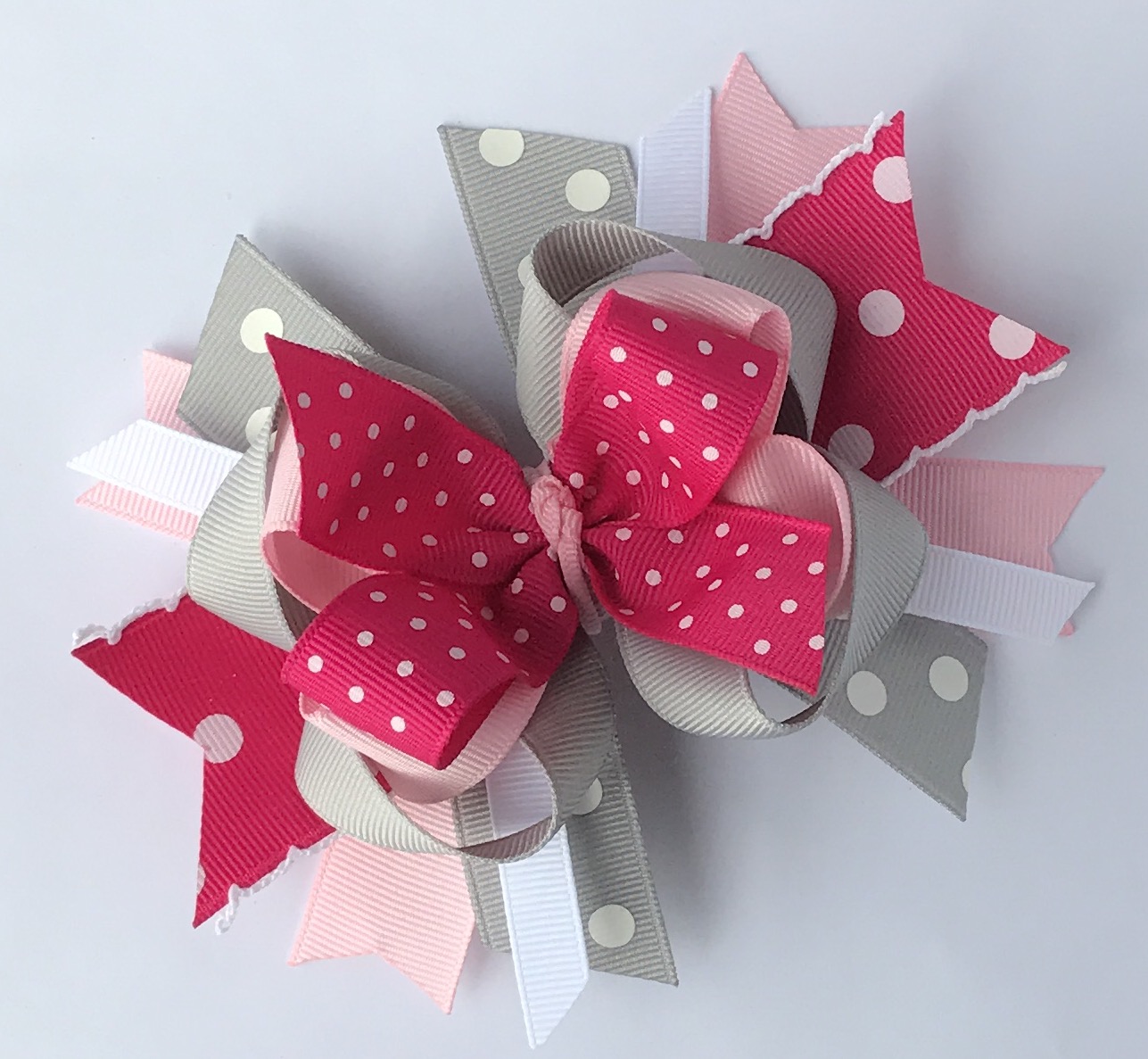 Super cute pink and grey hairbow. Hand crafted with the highest quality materials.