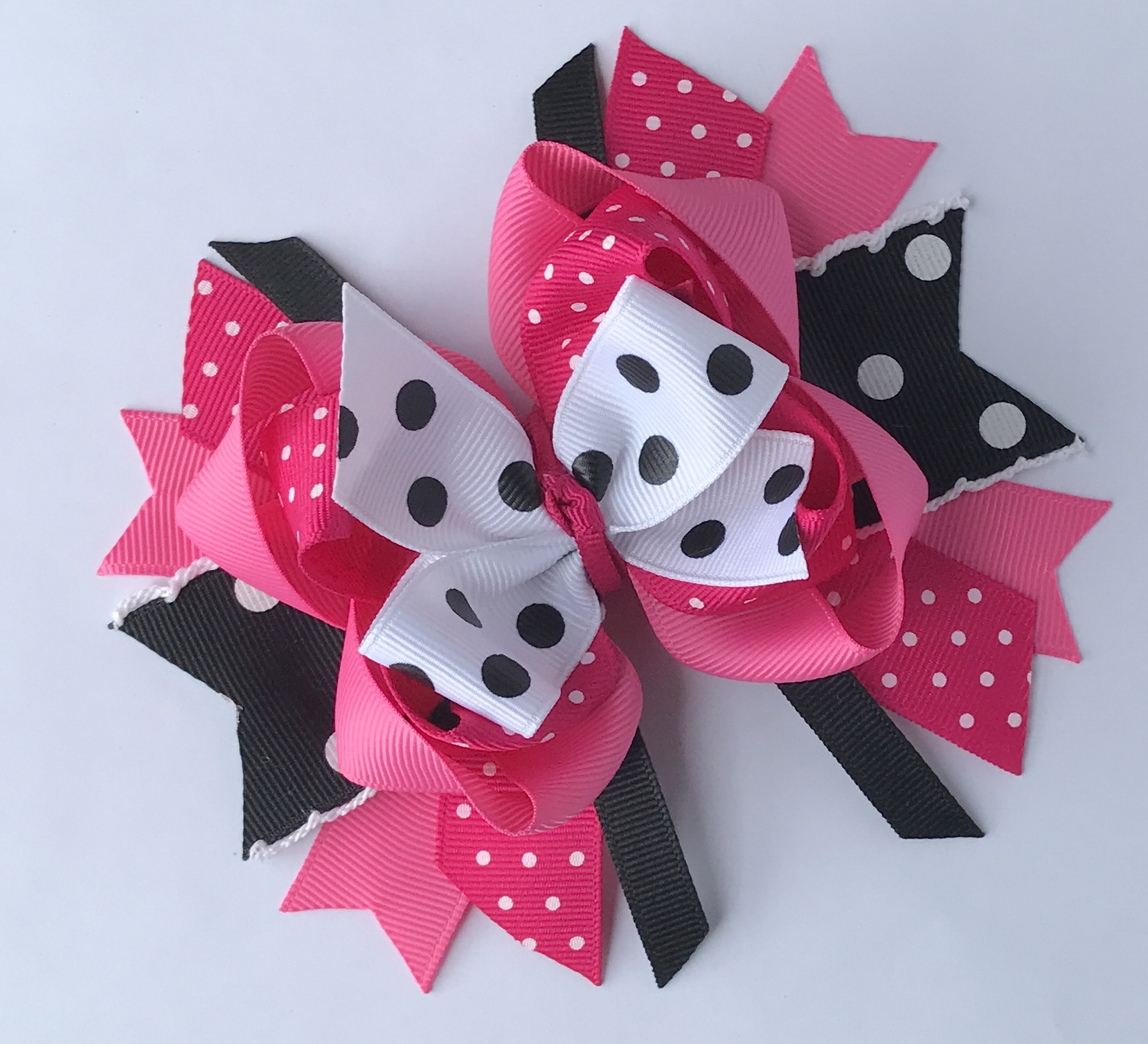 Super cute pink and black hairbow. Hand crafted with the highest quality materials.