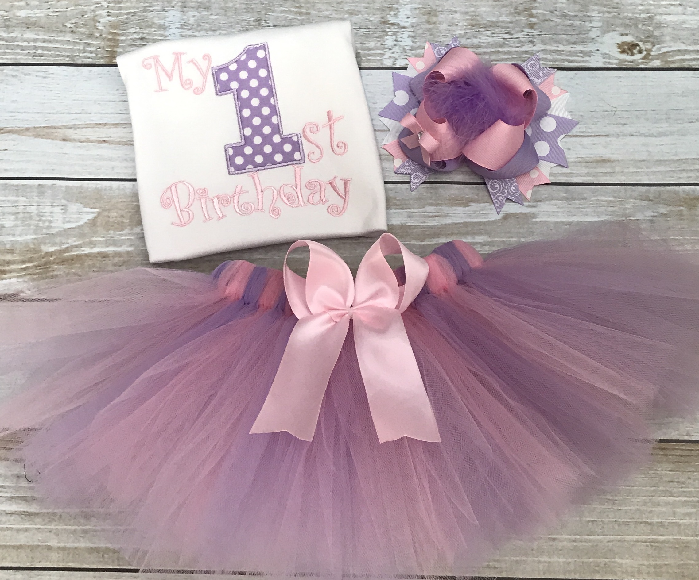 First Birthday Outfit Pink and Lavender Tutu and Hairbow