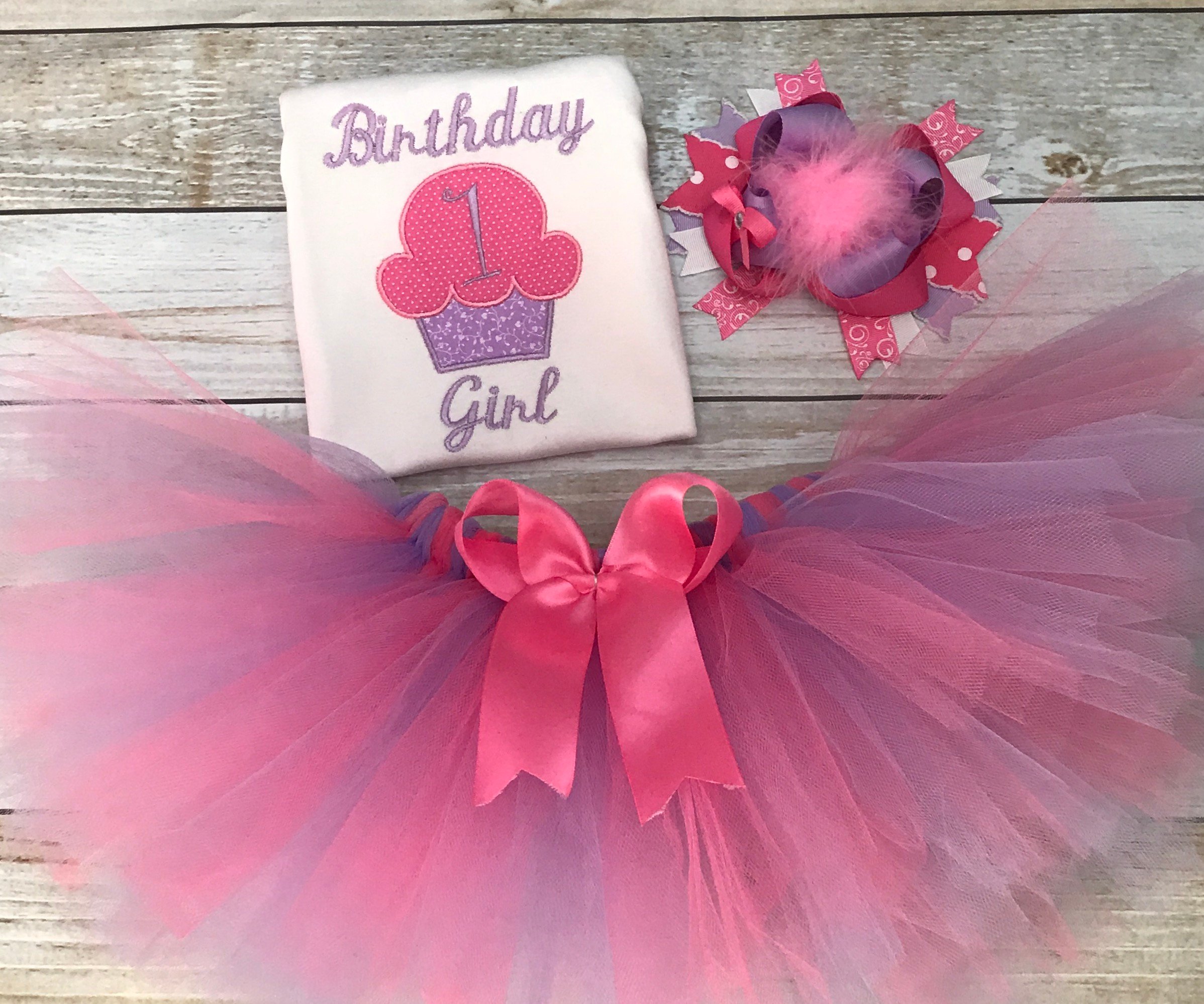 First Birthday Outfit Lavender and Pink Cupcake Tutu and Hairbow