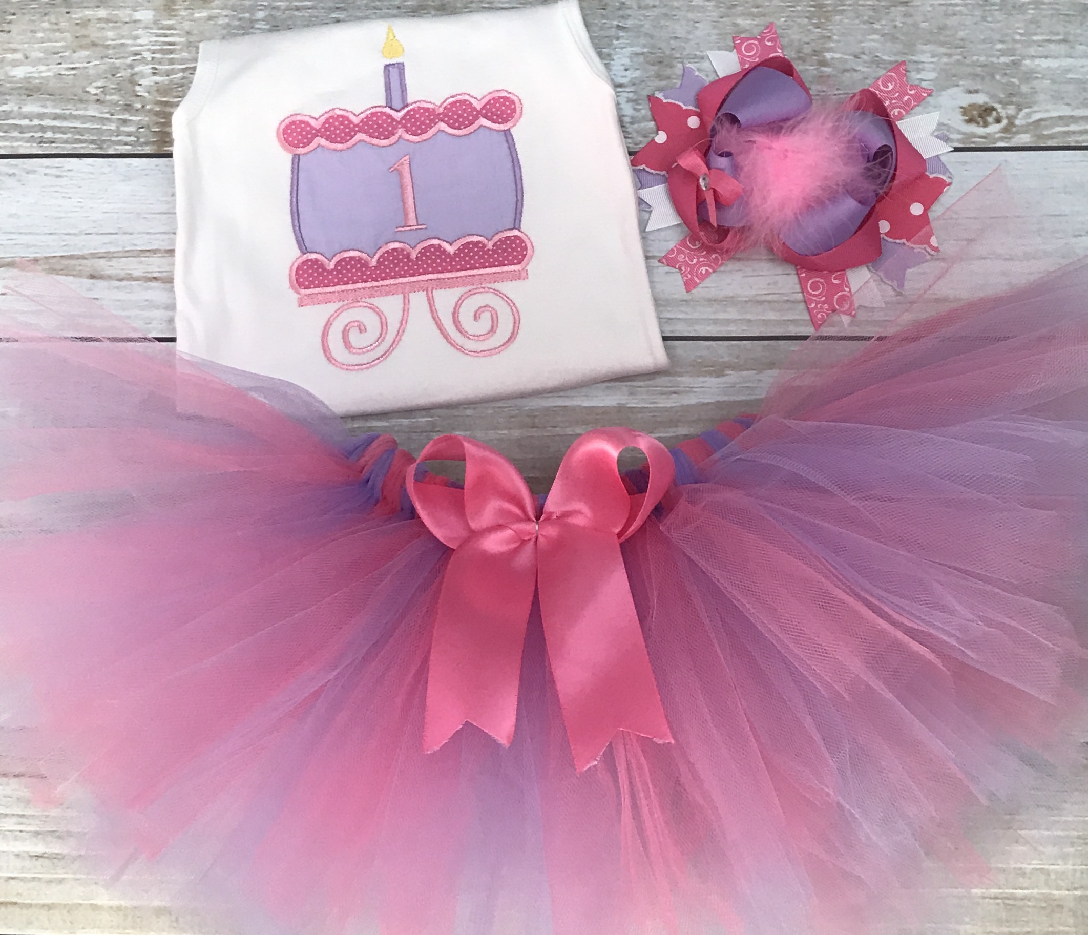 First Birthday Outfit Lavender and Pink Cake Tutu and Hairbow